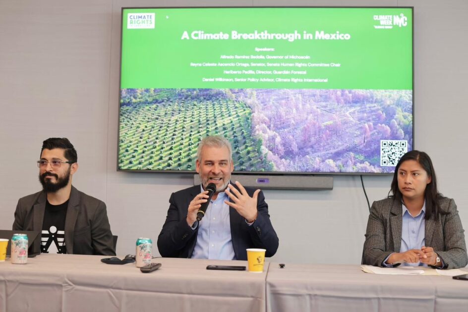 Nueva York, Estados Unidos, 24 de septiembre de 2025.-* El Guardián Forestal fue reconocido por Climate Rights Internacional como el mejor sistema de vigilancia satelital en el mundo para defender la conservación de los bosques, luego de la presentación que realizó el gobernador Alfredo Ramírez Bedolla durante la semana del clima (Climate Week) realizada en Nueva York, Estados Unidos.