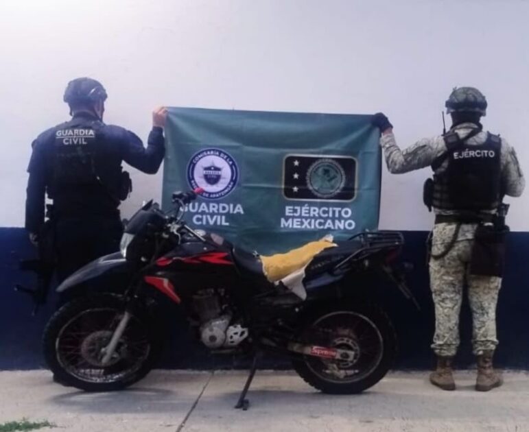 Los trabajos preventivos efectuados por los agentes de la Guardia Civil y del Ejército Mexicano derivaron en el hallazgo de tres armas largas de distintos calibres, mil 145 cartuchos útiles, cuatro cargadores y una motocicleta marca Honda en aparente estado de abandono, en la localidad de Ojo de Agua de esta demarcación.